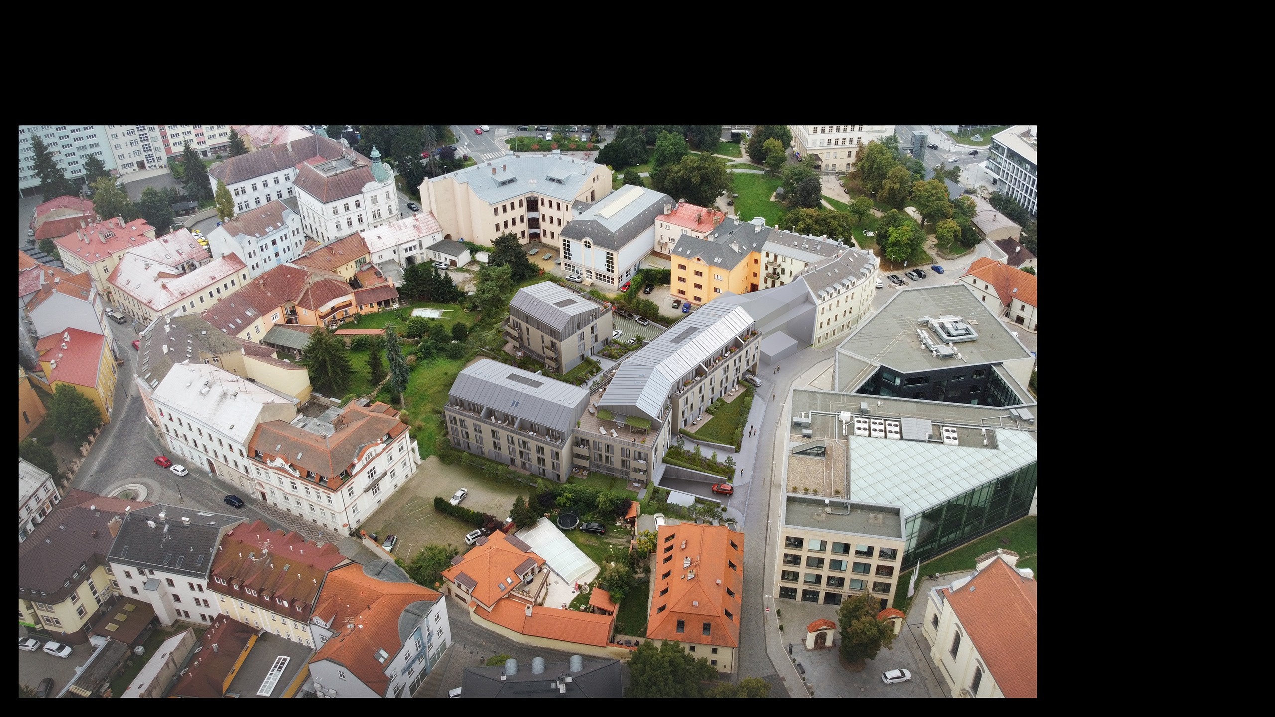 Výzvou tohoto investičního záměru bylo citlivě doplnit blokovou zástavbu v historickém centru Mladé Boleslavi. Navrhli jsme proto hmotu rozčleněnou do tří sekcí, které sjednocuje zelená podnož s předzahrádkami. Dynamicky zalomená uliční fronta a ustupující podlaží plynule navazují na okolí a dávají vyniknout sousední kulturní památce.
